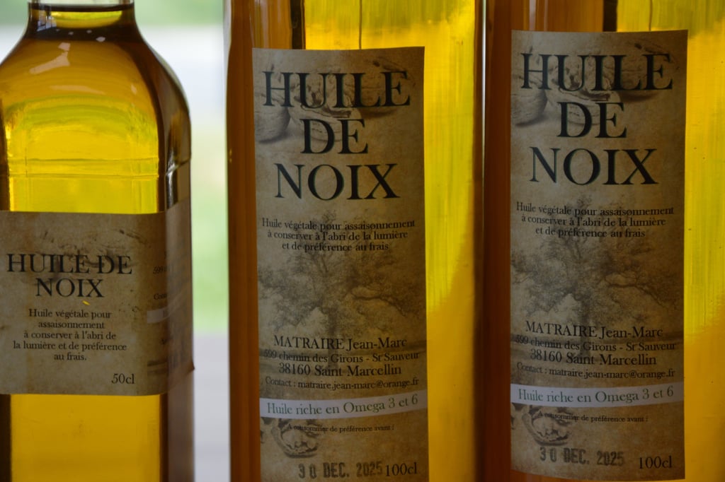 Vous retrouverez également d'autres produits de producteurs locaux : noix, huile de noix, œufs, purées et soupes de légumes et miels.